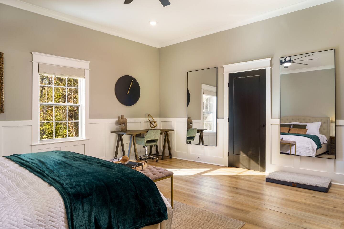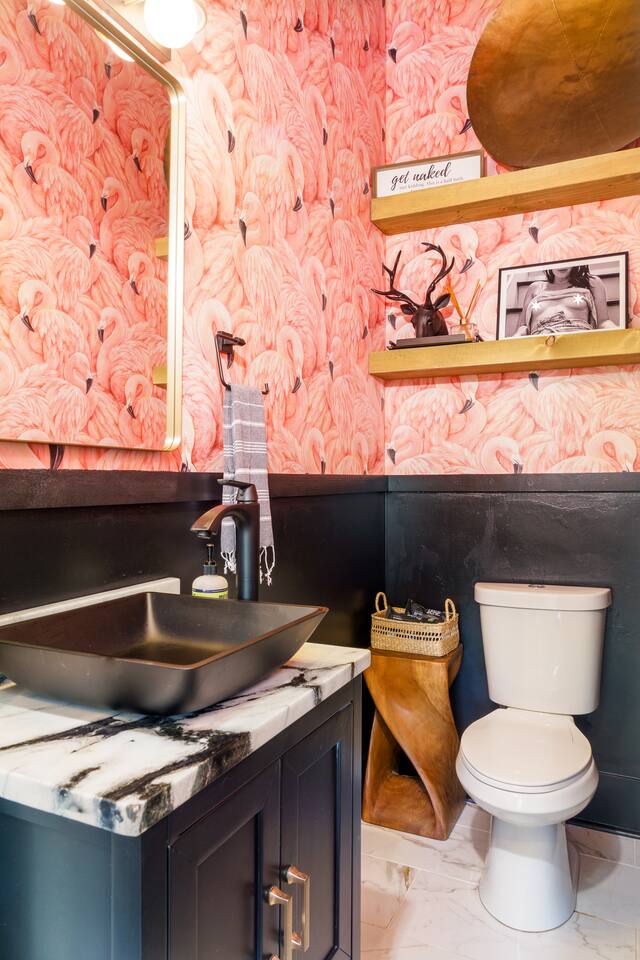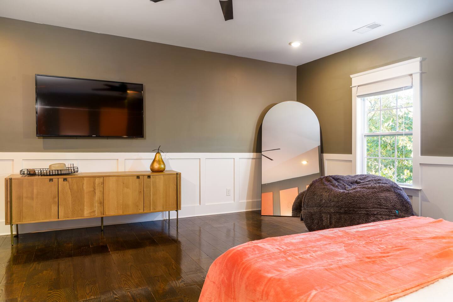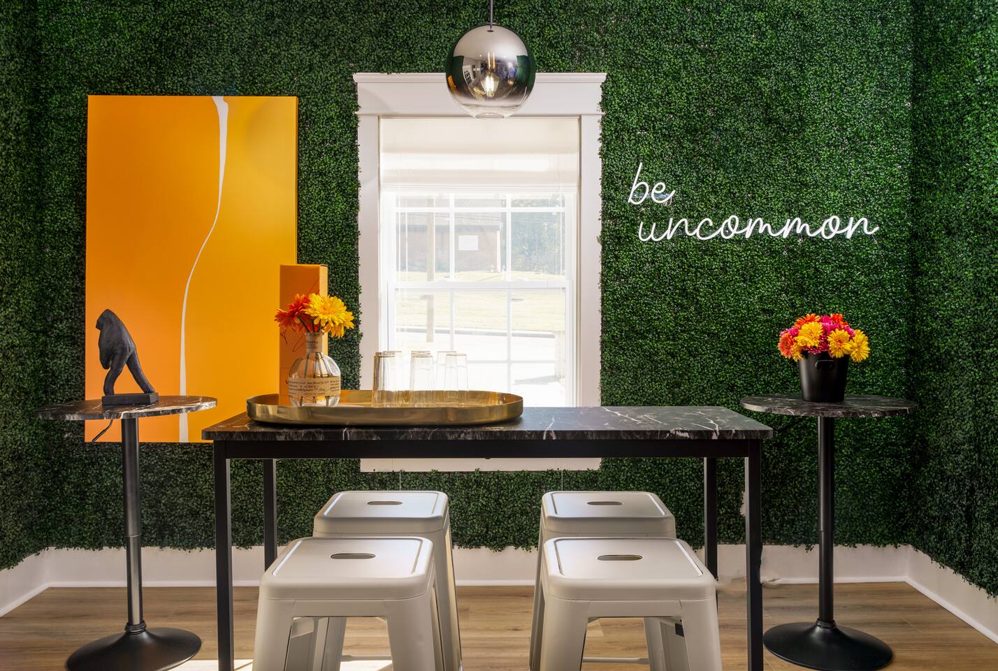 What Guests Love: Ample Space for Everyone: Featuring 12 spacious beds and various seating areas, this home ensures everyone has room to relax without feeling cramped—perfect for family vacations or group getaways. Entertainment Hub: Unwind in the dedicated movie room with a projector screen, comfy loungers, wine & beer fridge, and large Roku-equipped TVs for a luxurious entertainment experience. Photo Opportunity Heaven: Capture your Nashville memories against our gorgeous green ivy wall with the eye-catching "Be Uncommon" neon sign, complete with a glam station for getting ready. Busy Bee Glam Area: Our stylish getting ready area is equipped with light-up mirrors, vanity space, and hangers for all your outfits. Pet-Friendly: Fenced in backyard for your furry friends to safely roam and play. BBQ Grill & Chill: Enjoy outdoor cooking on the spacious backyard deck. Trendy Location: Just a quick drive to Downtown, Nissan Stadium, and Bridgestone Arena, enjoy the balanced tranquility of East Nashville with easy access to the city’s hotspots. Fully Stocked Coffee Bar: Fuel your adventures with your favorite brews. Our Keurig coffee machine and plenty of coffee supplies will ensure you’re ready to explore. House Details and Amenities Step inside this exquisitely designed home, perfectly suited for a luxurious vacation or a vibrant group trip. MAIN FLOOR Modern Kitchen: Equipped with all essential dishes, utensils, and appliances, including a fully stocked coffee bar to satisfy every caffeine craving. Living & Dining Room: Relax in the spacious living area with a sectional couch and 65” TV for streaming your favorite movies, easily accommodating gatherings with seating for 8 at the elegant dining table—complete with additional bar stools for friendly chats. Half Bathroom: Located off the dining area, featuring lively wallpaper for a fun touch. Master Suite Bedroom 1: King size bed with walk-in closets, an en-suite bathroom, and a private desk area for work or relaxation. Master Bathroom 1: Luxurious amenities like a large soaking tub, standing shower, private toilet, and double sinks for convenience. Laundry: Full-size washer and dryer for your convenience. UPSTAIRS Bedroom 2: Two queen size beds with a spacious walk-in closet. Bedroom 3: Two full size beds/loungers and a projector movie screen for your very own private theater experience! Bedroom 4: Three full size beds and a glam station with four vanities, complete with a scenic walk-out balcony. Bedroom 5: A full size bed with a sliding door for added privacy, connected to a shared bathroom. Bathroom 2: Accessible from bedrooms 2 and 3. Bathroom 3: Accessible from bedrooms 4 and 5. For your ultimate comfort, each bedroom is equipped with room darkening shades to ensure a restful night’s sleep, helping you recharge for another fun-filled day exploring all that Nashville has to offer. OUTSIDE Backyard: A fenced yard with ample space for your dogs to play, along with an outdoor grill on the deck for alfresco dining. Convenience and Comfort Enjoy the ease of Self Check-In with our state-of-the-art smart lock featuring a keypad entry system. You'll receive your personalized access code prior to arrival, allowing you to settle in and start your vacation without any hassle. The Neighborhood Explore East Nashville, known for its eclectic and artsy vibe, featuring some of the best restaurants, live music venues, and trendy hotspots. With quick access to Broadway’s excitement via a 10-minute Uber ride, you can easily enjoy downtown attractions such as Nissan Stadium, Bridgestone Arena, Grand Ole Opry, Music Row, and more. Pet-Friendly Haven Bring your pups along! Our fenced backyard is perfect for pets to roam freely. Pet Policy: Up to 2 dogs allowed ($150 non-refundable fee). Sorry, no cats. Parking Plenty of free driveway parking! Our circular driveway accommodates up to 6 cars comfortably—no street parking needed. House Rules Maximum of 12 guests. Maximum of 6 vehicles. No smoking. Must be 25+ years old to book. Quiet hours: 10:00 PM - 8:00 AM. No parties or loud music. Trash must be taken out for Tuesday morning pickup. No cats allowed. No trailers parked in the driveway or streets. FAQs Parking? Yes, up to 6 cars in the driveway. Refunds for bad weather? No refunds due to weather or natural disasters. BOOK YOUR UNCOMMON EXPERIENCE TODAY! Enjoy luxury, comfort, and unforgettable moments at The Uncommon House. Your Nashville adventure awaits!
